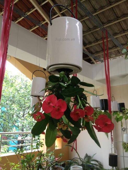 Afin d’obtenir des résultats satisfaisants, l’arboriste en herbe doit utiliser un pot capable de conserver l’eau et l’humidité pendant cinq à dix jours. Le récipient doit avoir deux anneaux métalliques afin de le suspendre sur un fil en inox. De plus, il faut y placer une pièce de filet rond pour que la terre reste dans le pot, loi de l’apesanteur oblige. Ce type de pot est vendu en moyenne 120.000-140.000 dôngs.