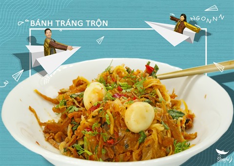 | Le banh trang trôn (salade avec des galettes de riz). |