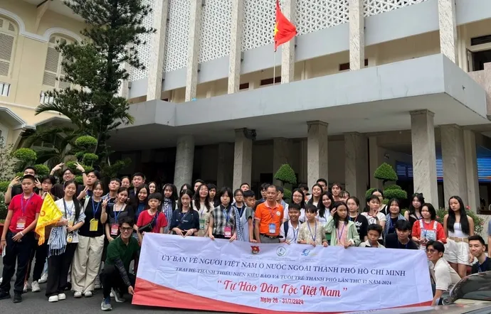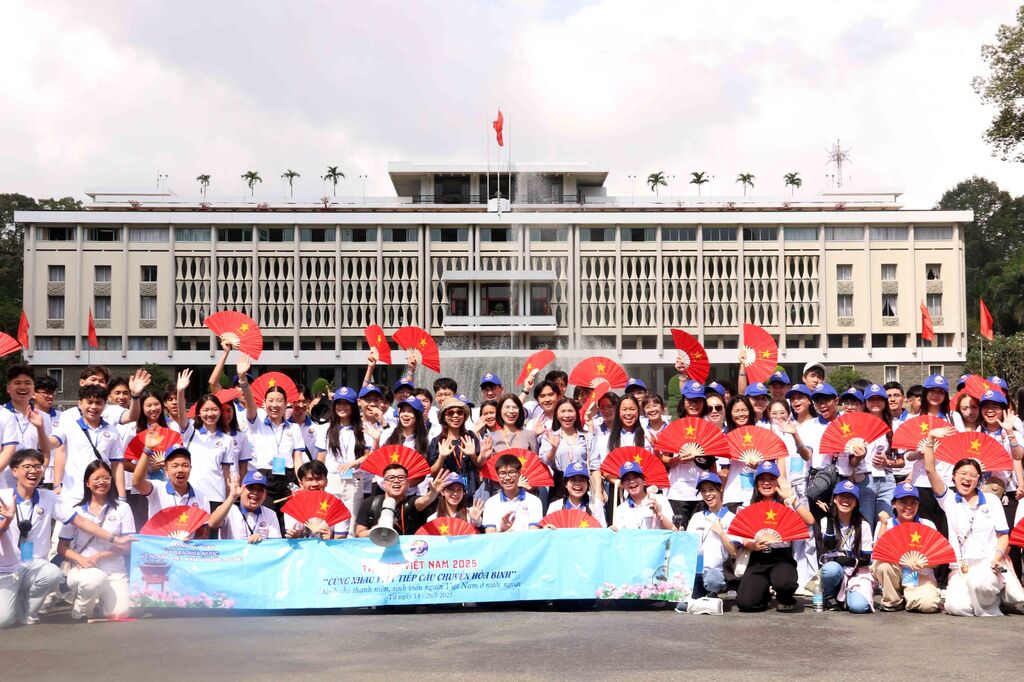 | Les jeunes Vietnamiens d’outre-mer participant au Camp d’été du Vietnam 2025 visitent le Palais de la Réunification, à Hô Chi Minh-Ville. |