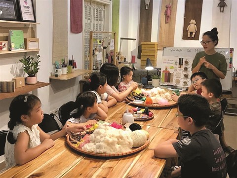 | Hanh Nguyên initie des enfants de Hanoï à la fabrication de jouets en tissu. |