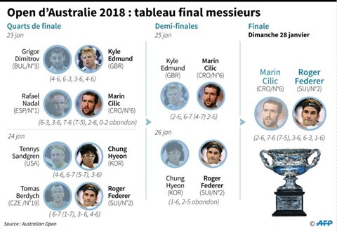 | Tableau final messieurs de l'Open d'Australie de tennis. |