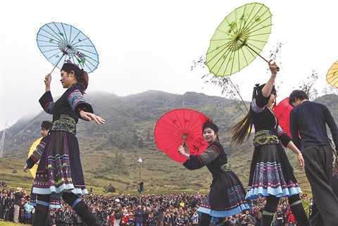 | Danse folklorique d’une ethnie locale au marché de l’amour Khâu Vai, province de Hà Giang (Nord). |