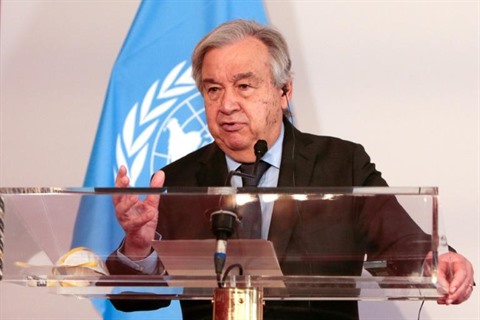 | Le secrétaire général de l'ONU, Antonio Guterres, à Vienne en Autriche, le 11 mai. |