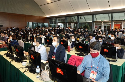 | Des journalistes travaillant dans le centre de presse du Congrès national du Parti communiste du Vietnam. |