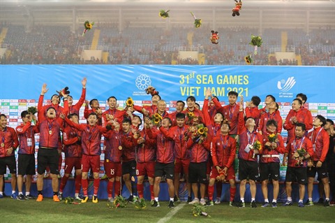 | L'équipe masculine de football U23 du Vietnam de vaincre celle de la Thaïlande lors de la finale des SEA Games 31. |
