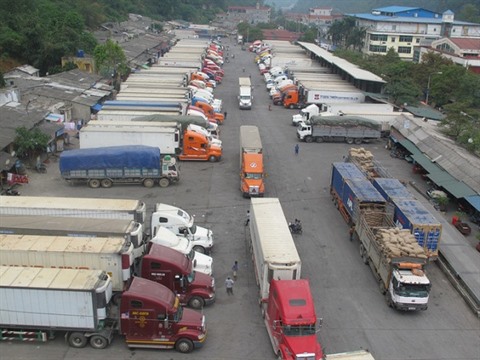 | Le lieu de rassemblement des camions au poste frontière de Tân Thanh. |