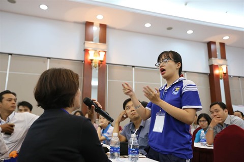 | L’étudiante Lê Minh Tu prend la parole, le 23 octobre à Hô Chi Minh-Ville. |