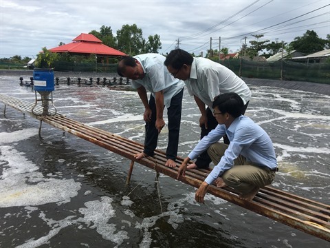 | Le modèle de crevetticulture de haute technologie est appliqué dans le delta du Mékong depuis une dizaine d’années. |