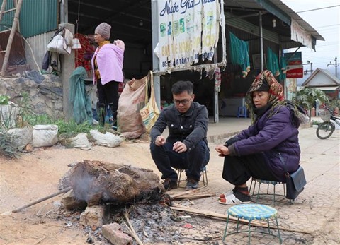 | Des habitants de Diên Biên (Nord) se chauffent près du feu. |