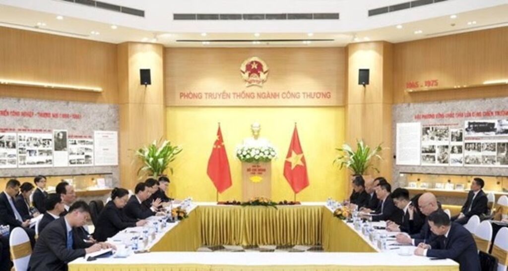 Lors de la séance de travail, Nguyen Hong Dien et Wang Ning ont assisté à la cérémonie de signature d’un protocole d’accord sur le renforcement de la coopération dans les domaines de l’économie et du commerce entre le Service de l’Industrie et du Commerce de la province vietnamienne de Bac Giang et le Service du Commerce du Yunnan.