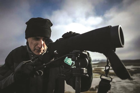 | Un bénévole compte les oiseaux d’eau dans la Réserve naturelle de Lilleau des Niges, en Charente-Maritime, en France. |