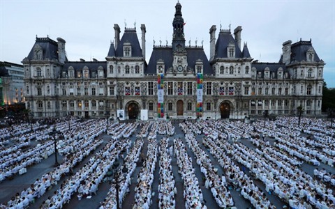 | 8.000 personnes selon les organisateurs ont participé au "Dîner en Blanc", le 8 juin sur la place de l'Hôtel de ville à Paris. Photo : AFP/VNA/CVN |