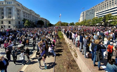 | Plusieurs milliers d'opposants à Donald Trump manifestent à Washington le 17 octobre. |