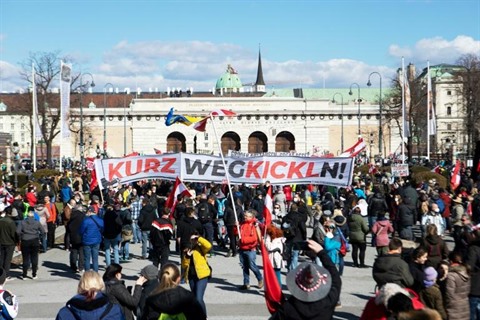 L'ancien ministre FPÖ de l'Intérieur Herbert Kickl a, dans une intervention devant la foule, accusé le gouvernement de mener une politique "folle et bizarre". Les manifestants ont scandé des slogans et brandi des pancartes exigeant la démission du chancelier de centre droit Sebastian Kurz, ou encore hostiles aux médias, qualifiés de "presse mensongère".