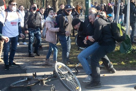 Des heurts isolés ont été signalés entre des manifestants et des contre-manifestants de gauche. La plupart des participants ne portaient pas de masque et n'observaient pas de distance physique en traversant le centre ville en direction du parc du Prater où le parti d'extrême droite FPÖ les avait appelés à se rassembler.