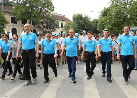 | Le vice-Premier ministre Truong Hoà Binh (centre) lance la "Marche pour ta santé", le 23 juin à Hanoï. |