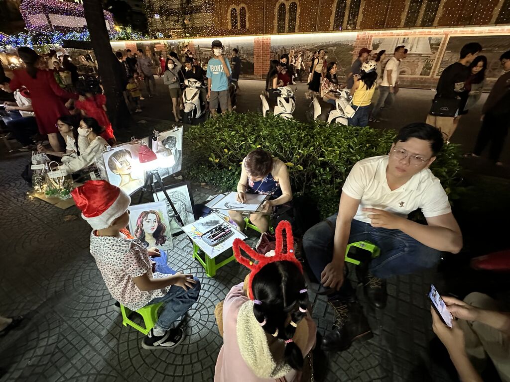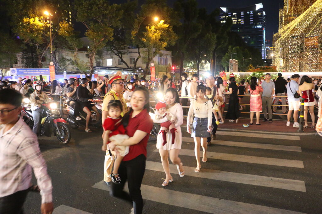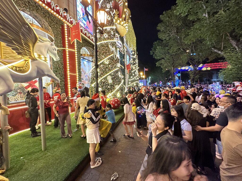 Dans une ambiance festive marquant Noël 2024 et l’arrivée imminente du Nouvel An 2025, les fidèles chrétiens ont, comme chaque année, commencé à se rendre tôt au centre-ville de la mégapole du Sud pour assister à la messe à la Cathédrale Notre-Dame de Saigon. Entre 18h et 20h30, les abords du lac Con Rua (lac de la Tortue), la Maison de la jeunesse de Hô Chi Minh-Ville, le palais de la Réunification, situés à proximité de la cathédrale, ont été pris d’assaut par une foule joyeuse. Les visiteurs formaient des files pour célébrer Noël, prendre des photos et admirer les décorations de la Nativité de Jésus-Christ installées devant et autour des bâtiments emblématiques de la ville.
