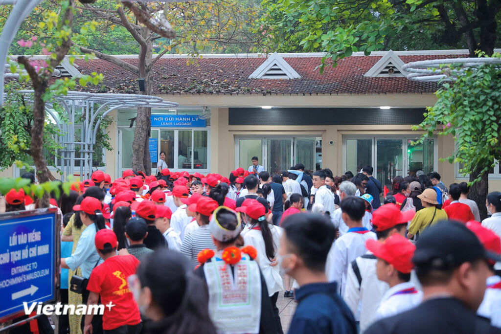 Dès l’aube, une longue file de visiteurs s’étend devant le mausolée. Parmi eux : des personnes âgées, des vétérans, des représentants des minorités ethniques, mais aussi des enfants accompagnés de leurs parents. Bien que la file soit dense, l’organisation reste fluide et ordonnée, témoignant de l’émotion et de l’attachement profond du peuple vietnamien envers le Président Hô Chi Minh.
