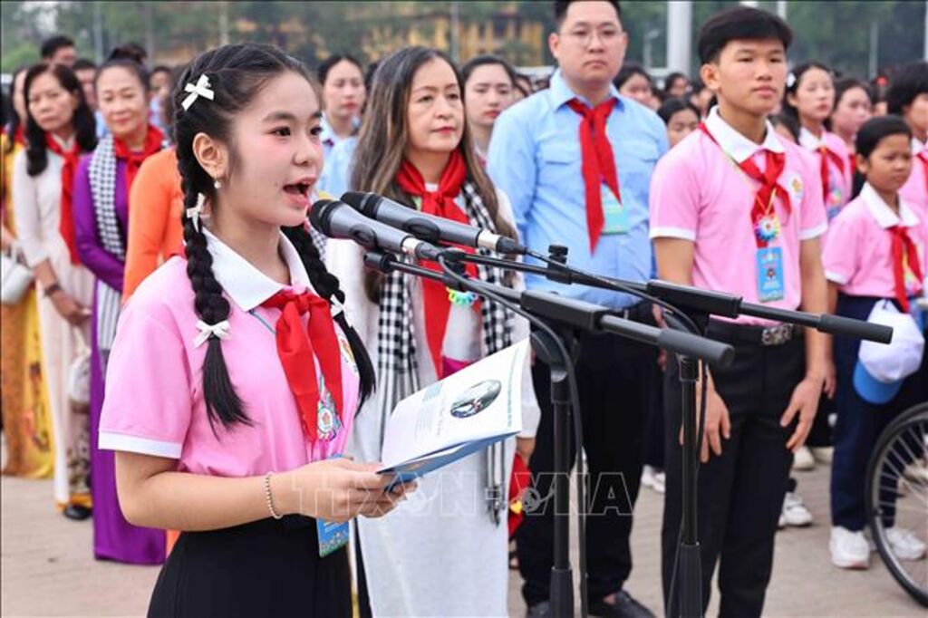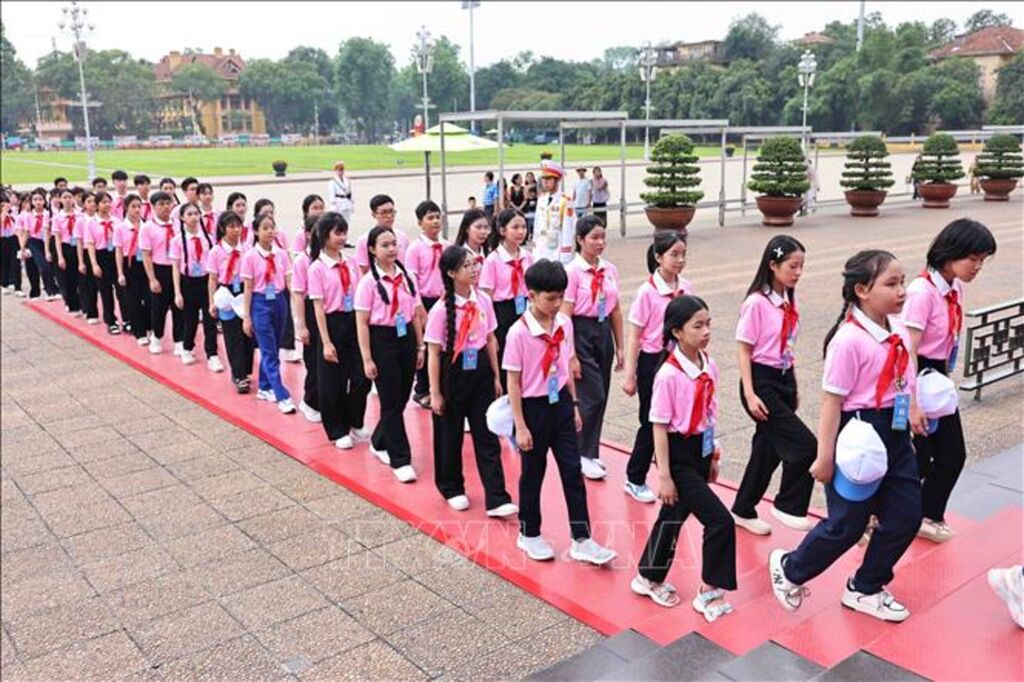 Le matin du 14 mai, la délégation des "enfants sages de l’Oncle Hô" a présenté ses réalisations avant de lui rendre hommage au mausolée.