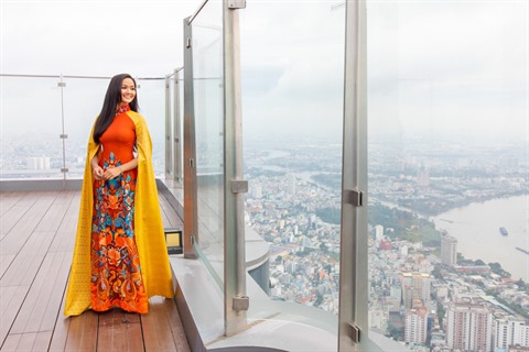 | Miss Univers Vietnam 2017 et top 5 Miss Univers, H’Hen Niê, porte l’áo dài pour promouvoir le tourisme à Hô Chi Minh-Ville. |