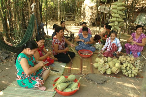 Le village de vannerie du hameau de Giong Dinh, commune de Dai An, est divisé en de nombreux groupes différents. Chacun compte 30 à 40 femmes, tous d'origine khmère. Après les travaux agricoles, elles tissent des produits tels que paniers, corbeilles à poisson, paniers en bambou tressé… qui seront vendus dans toutes les provinces du delta du Mékong. Mme Tang Thi Manh, membre du groupe de vanniers du hameau de Giong Dinh, a déclaré que sa famille,de 4 personnes, peutgagner 100.000 VND par jour. Grâce à cela, sa famille est sortie de la pauvreté en 2017.