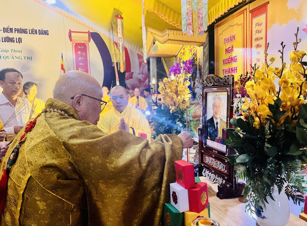 Plus tôt, le très vénérable Thich Thiên Nhon, patriarche adjoint du Conseil de patronage de la VBS et président du Conseil exécutif de la VBS, a présenté ses condoléances pour le décès du leader du Parti.