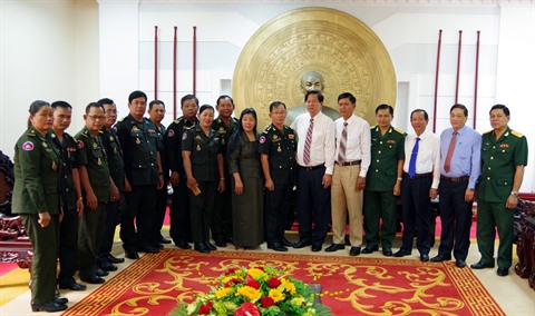 | Des officiers militaires de la province cambodgienne de Kep et des responsables de Soc Trang posent pour une photo lors de la réunion du 29 janvier. |