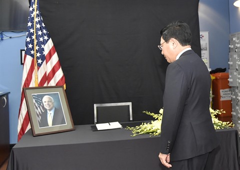 Le vice-Premier ministre et ministre des Affaires étrangères Pham Binh Minh, le président de la Commission des relations extérieures de l’Assemblée nationale Nguyên Van Giau, les représentants de certains ministères, secteurs et d’organisations de masse sont venus adresser leurs condoléances à la famille du sénateur John McCain.