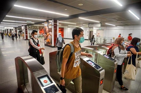| Des gens portent des masques pour se protéger de COVID-19 dans une gare à Kuala Lumpur, en Malaisie, le 4 mai. |