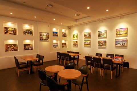 | L'enseignant sud-coréen Kim Jai-min dans la salle d'exposition de ses œuvres sur le Vietnam. |