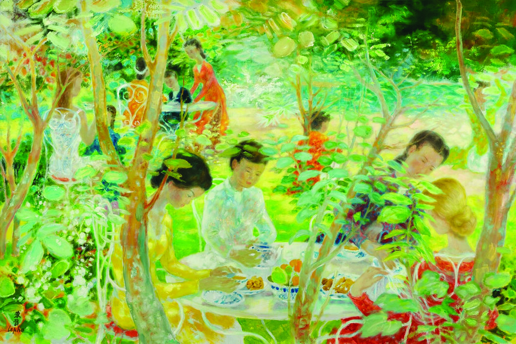 Lê Phô est reconnu comme l’un des maîtres de la peinture vietnamienne du XXe siècle. Dans Thé et Sympathie, il dépeint une séance de thé dans un jardin ensoleillé. Quatre femmes sont assises à une table blanche, dégustant des fruits, des gâteaux et du thé. Sept autres personnes sont en arrière-plan, regroupées en petits groupes et sirotant du thé.