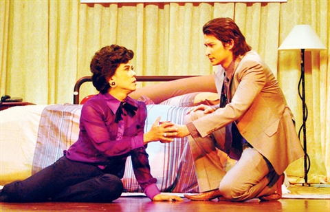 | Les acteurs Thanh Lôc (gauche) et Huy Khanh, stars dans la pièce "Hop dông manh thu" jouée en août aux États-Unis. |