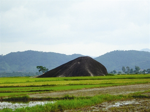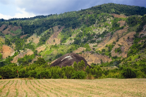 | La pierre d’éléphant mère, au milieu d’un champ, à Yang Tao, Dak Lak. |