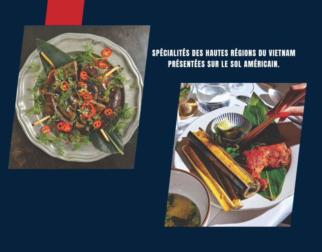 Au cœur des États-Unis, les convives peuvent goûter un banquet du Centre Vietnam avec du cao lâu (nouilles de Hôi An) ; une table des montagnes avec du poulet grillé et du com lam (riz cuit dans le bambou), des légumes sauvages, des saucisses de cartilage grillées aux feuilles de mac mât (Clausena indica) ou encore un plateau côtier avec des rouleaux de hareng.
