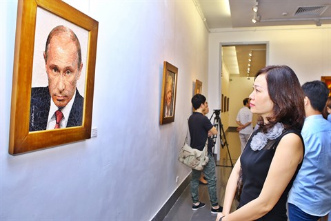 | Le portrait du président russe Vladimir Putin à l'exposition. |