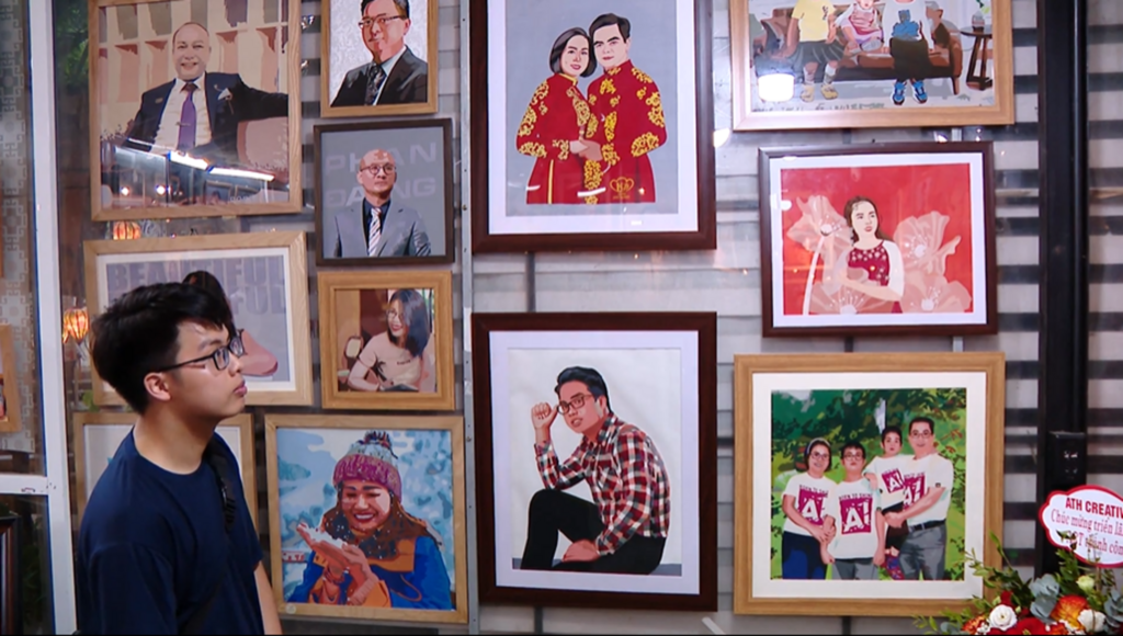 Dans un petit atelier, les jeunes artisans de Vụn Art s’affairent avec minutie. Les chutes de soie, jugées inutilisables, sont découpées avec soin, collées, assemblées, puis modelées pour donner vie à des portraits d'une grande finesse. Grâce à leur patience et à leur savoir-faire, ces artisans insufflent une âme à chaque visage. Il peut s’agir de figures célèbres ou de commandes personnalisées, toutes témoignant de la reconnaissance envers le talent de Vụn Art.