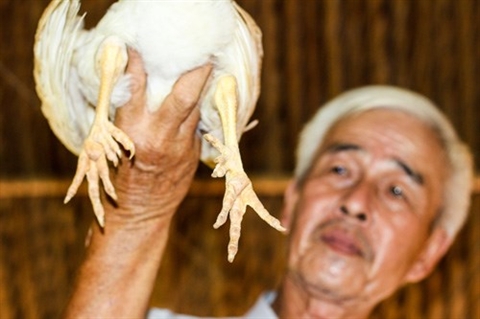 Se promenant dans sa ferme, divisée en différentes zones d’élevage, le propriétaire précise que la race de poulet à six ergots est aussi élevé dans plusieurs régions montagneuses des provinces de Phu Tho et de Bac Giang (Nord). De petite taille, la volaille pèse au maximum 1,5 kilo. Elle possède une crête rouge, une queue courbée et des pattes fermes avec des ergots de différentes tailles. En raison de la dégénérescence de la race, leur reproduction est très difficile.