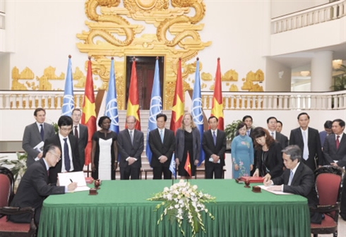 Lors de la cérémonie de signature, le président Jim Yong Kim a annoncé une aide financière de plus de 3,8 milliards de dollars pour le Vietnam dans les trois années à venir (2014-2017) afin de mener les tâches de développement socioéconomique prévues.