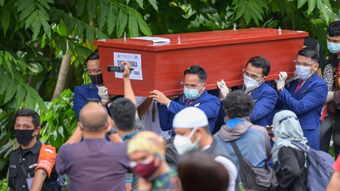 Au cimetière, l'épouse d'Okky Bisma, Aldha Refa serre contre elle un portrait du défunt et parsème de pétales de fleurs la terre de sa tombe. "Repose en paix là-haut mon chéri et attends moi (...) au paradis", avait-elle écrit cette semaine sur son compte Instagram. "Merci d'avoir été un mari parfait quand tu étais sur terre".