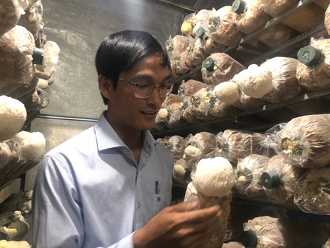 | Nguyên Minh Thuân, propriétaire de la ferme des champignons crinière de lion à Dà Lat, province de Lâm Dông (hauts plateaux du Centre). |