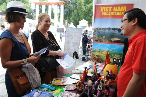 | Les visiteurs visitent le stand du Vietnam lors du festival. |