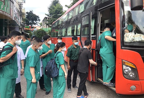 | Des médecins de la province de Binh Dinh (Centre) partent en renfort de Hô Chi Minh-Ville, le 10 août. |