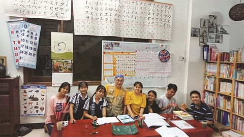 En faisant une promenade le long de la rue Nguyên Tri Phuong, au centre de l’ancienne et jolie ville de Hôi An, province de Quang Nam (Centre), une boutique toujours éclairée près du pont Câm Nam se distingue par une enseigne en langue japonaise. À l’intérieur, une dizaine d’enfants écoutent attentivement les leçons de leur professeur. Il s’agit d’une des deux classes de langue japonaise ouvertes ces dernières années à Hôi An (l’autre est dans la rue Nguyên Thai Hoc) par Takeshi Hirohata, ex-businessman de 70 ans.