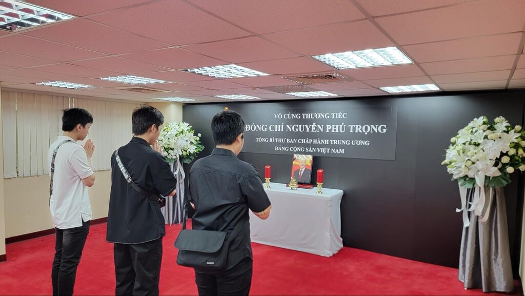 | Des représentants de la communauté vietnamienne de Taïwan (Chine) ont rendu hommage au secrétaire général Nguyên Phu Trong au Bureau économique et culturel du Vietnam à Taipei. |