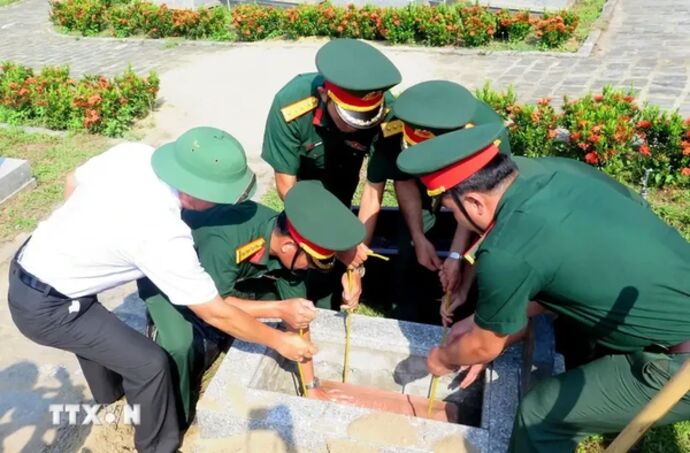 Suite à cette cérémonie, les restes de 12 martyrs ont été ramenés au pays par le commandement militaire de la province de Thua Thiên Huê pour organiser une cérémonie commémorative et d'enterrement au cimetière des Héros morts pour la Patrie de la province.