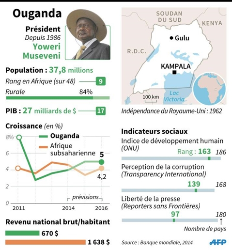 Les électeurs ougandais doivent choisir leurs 290 députés et décider s'ils maintiennent ou non leur confiance à M. Museveni, âgé de 71 ans et en quête d'un cinquième quinquennat, face à sept autres candidats.