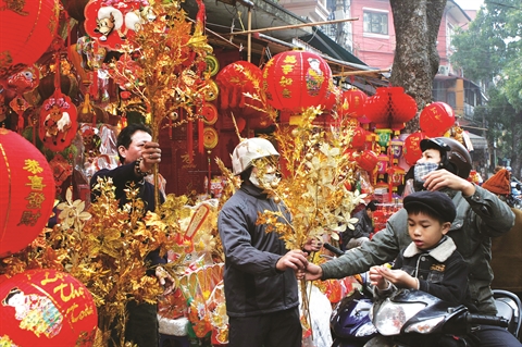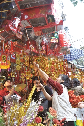 | Des consommateurs achètent des décorations pour l’autel familial. Photo : Nhât Anh/VNA/CVN |