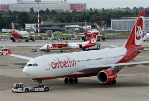 | Des appareils de la compagnie Air Berlin le 12 septembre 2017 à Düsseldorf. |