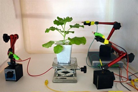 "Les agriculteurs pourraient se rendre compte qu'une maladie se propage, avant même que les symptômes clairs n'apparaissent". Les scientifiques connaissent depuis longtemps l'existence des signaux électriques émis par les plantes, mais leur surface irrégulière et molle rend difficile la pose de capteurs. Les chercheurs de l'université NTU ont conçu des électrodes qui ont la texture souple d'un film plastique et qui peuvent être attachées autour d'une plante pour détecter des signaux de façon plus fiable. Elles sont collées avec un "thermogel", un liquide à basse température qui se gélifie à température ambiante. D'autres chercheurs suivent aussi cette voie. En 2016 une équipe du Massachusetts Institute of Technology (MIT) a utilisé des feuilles d'épinards comme détecteurs capables d'envoyer un email aux scientifiques quand des explosifs étaient détectés dans le sous-sol.