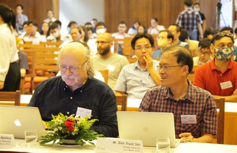 | Les Professeurs Duncan Haldane (gauche) et Dàm Thanh Son au colloque à Quy Nhon, le 11 juillet |